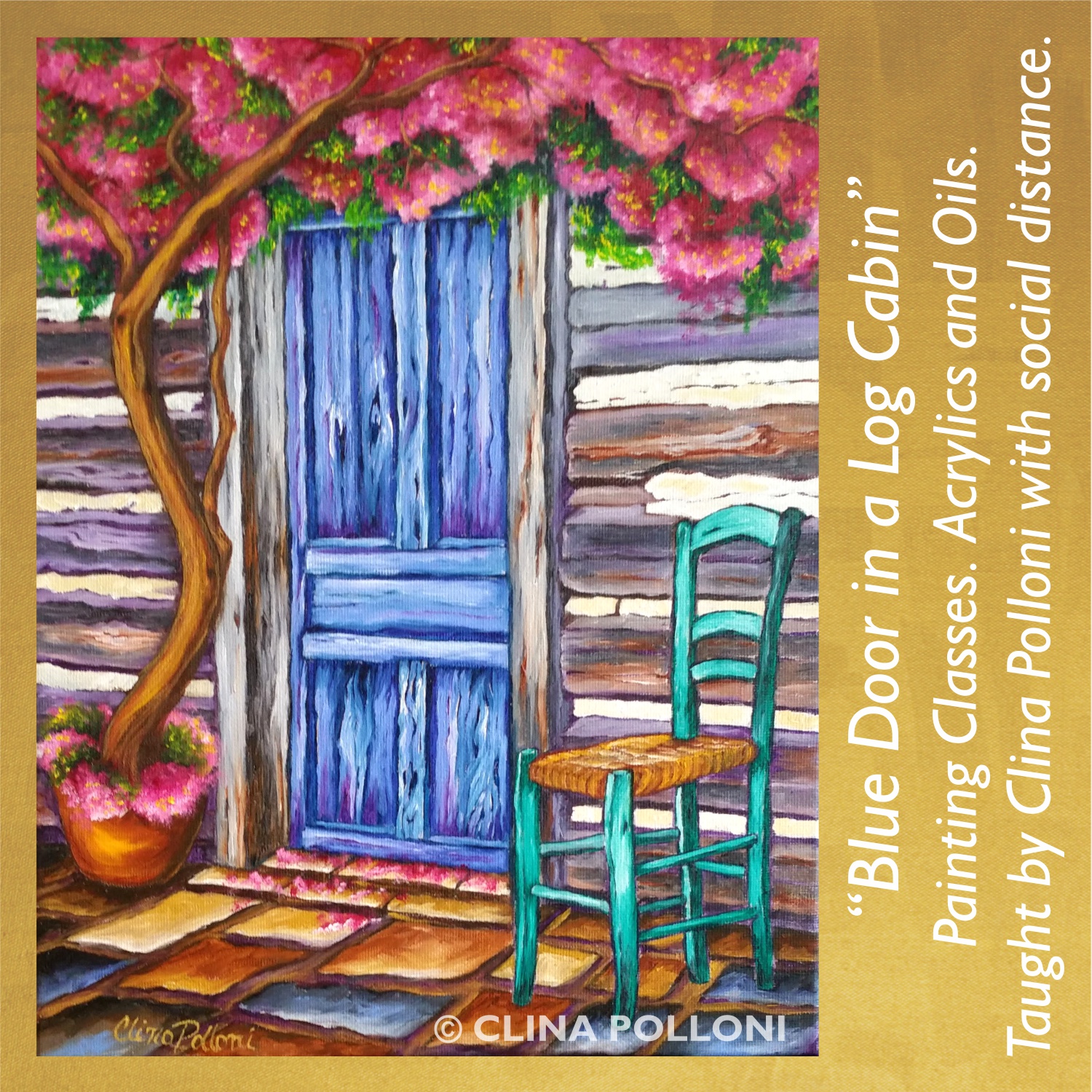 #paintingclassesnc #logcabin #littleartgallerync #bluedoor #pinkbougainvillea #wakeforestnc #thecottonco #oilsclasses #acrylicsclasses #clinapolloniart #clinahpolloni #artistachilena #northcarolinaartist