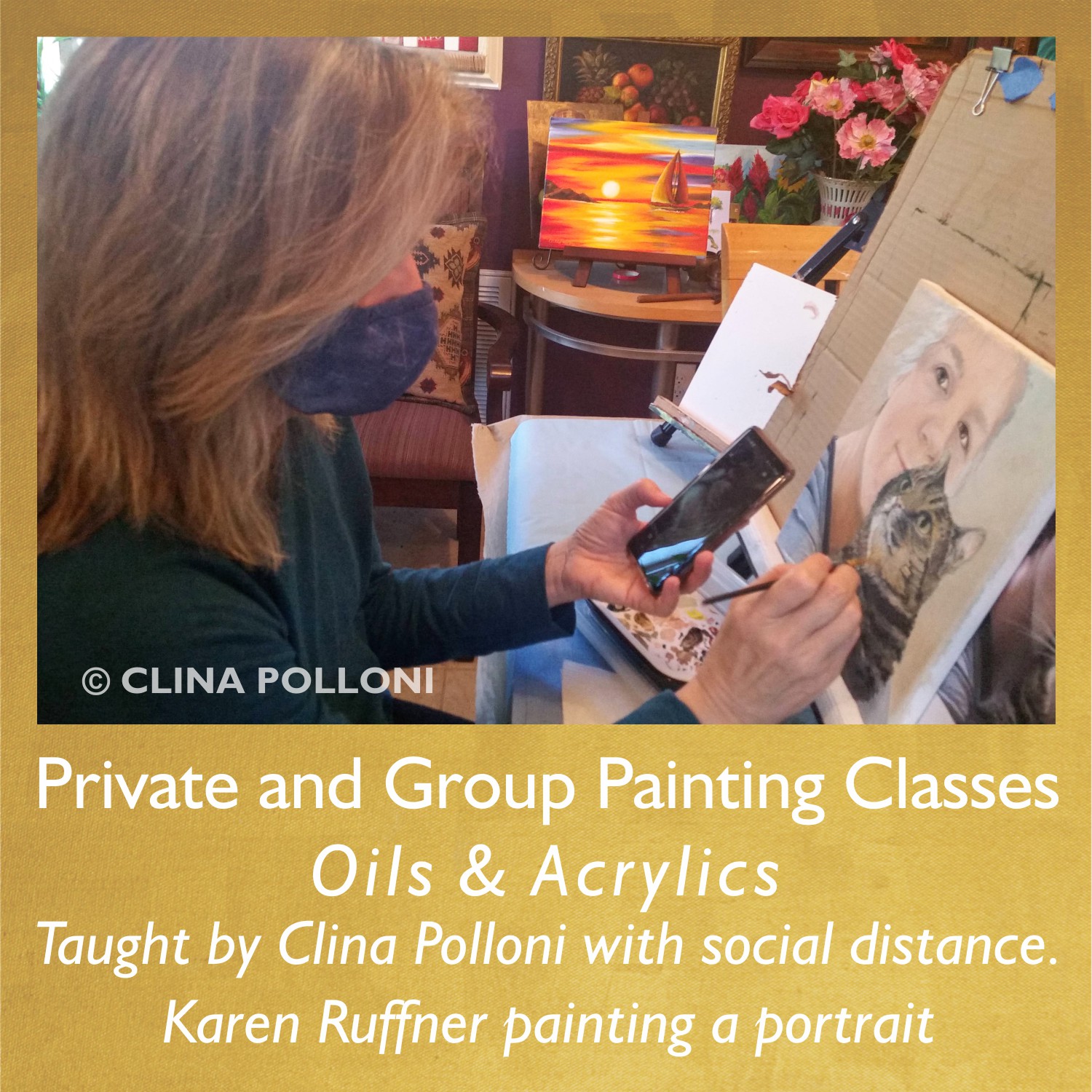 This painting is a self portrait of Clina Polloni student Labannya Samanta. The challenge is to get a perfect definition of light and shadow, creating the many colors tones to accomplish the folding of the close.
