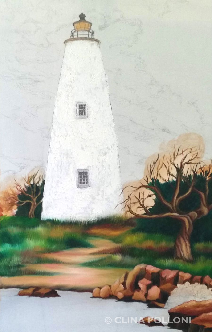 “The texture of the walls of the lighthouse were so interesting that in order to accomplished, I used super heavy gesso. I am proud to add this painting to the collection of oil paintings that I am doing about North Carolina. Ocracoke Island is an enchanting place with its natural beauty, the long-ago tales of pirates and ships, an inspiration for us artists.”
