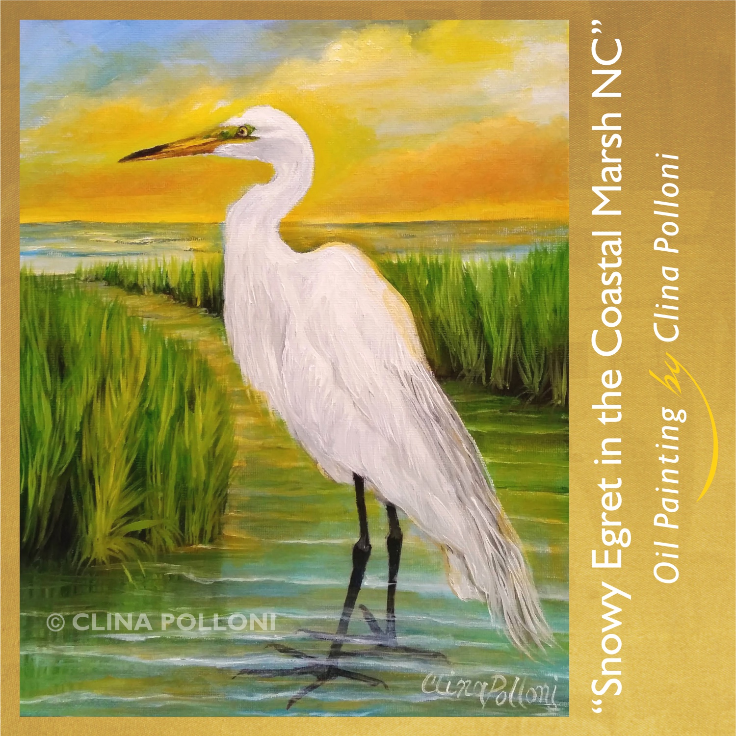 #snowyegret #coastalmarsh #outerbanks #seascape #littleartgallerync #wakeforest #oilpainting #thecottonco #clinapolloniart #clinahpolloni #seascapeforsale #artistachilena #northcarolinaartist #nccrystalcoast