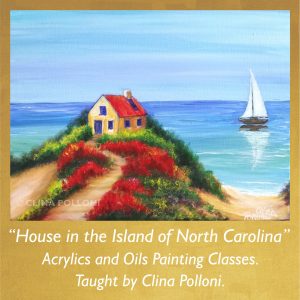House in the Island of North Carolina: 11″x 14″. Paint the ocean, reflections of a sailing boat and most important the little house in the cliff of the sand dunes. Click here for supply >>