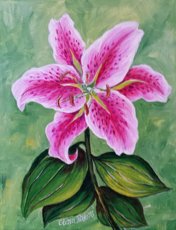 Menna Bahgat-Pink Lily-Painting Class acrylics oils