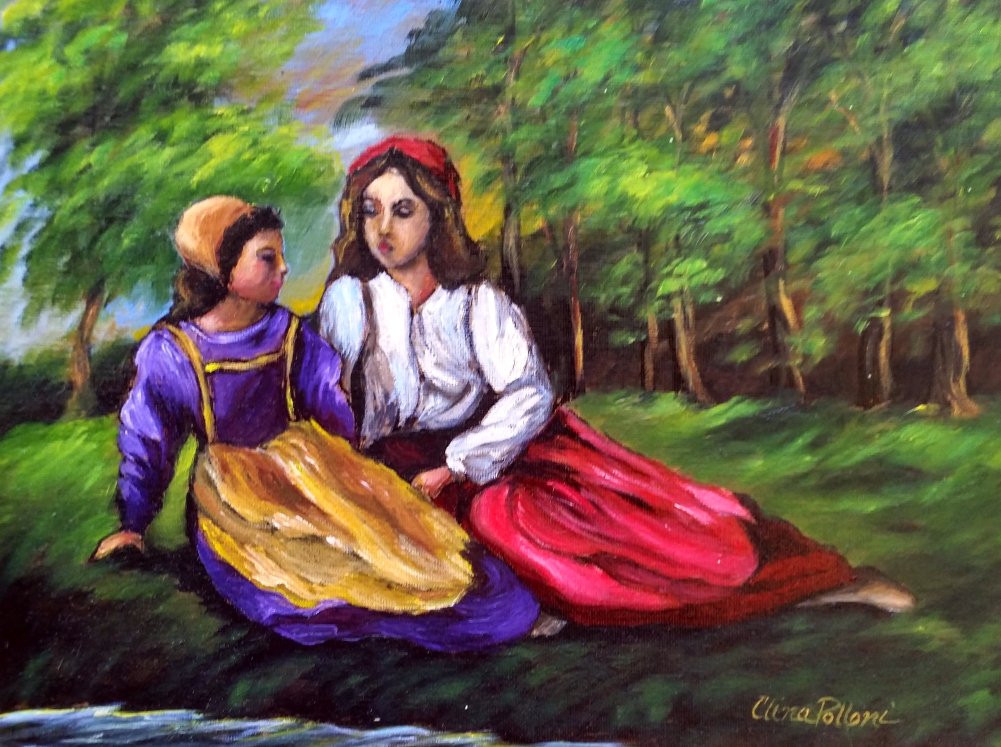 Sisters Love-Oil Painting by Clina Polloni.