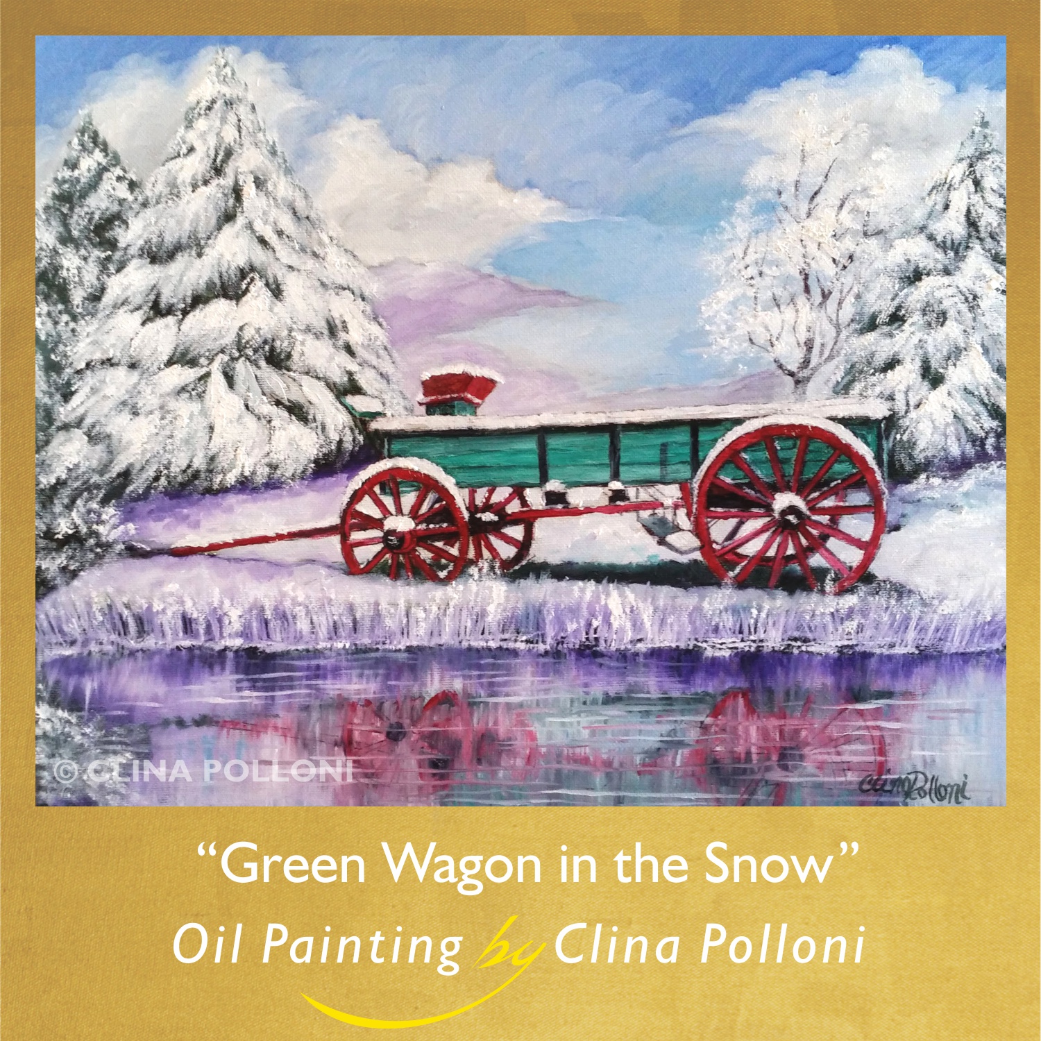 The Green Wagon in the Snow painting is © of Clina Polloni.