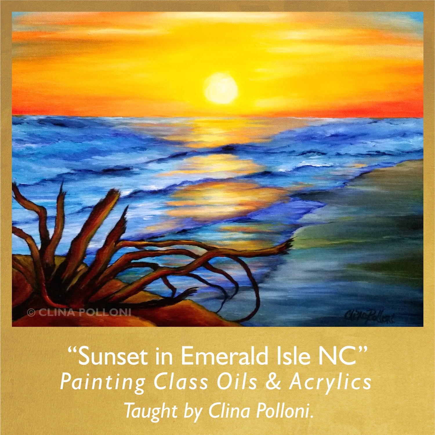 Enjoy learning the Sunset in Emerald Isle NC. Painting class acrylics oils.
