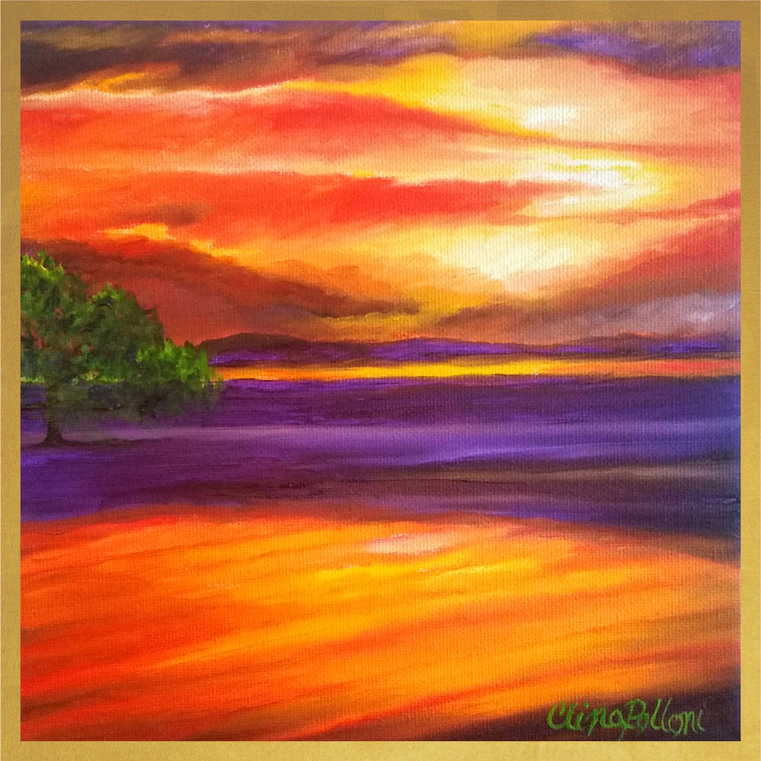 #orangesunset #ncsunset # #soundsunsetnc #littleartgallerync #wakeforest #thecottonco #oilpainting #sunsetpainting #clinapolloniart #clinahpolloni #seascapeforsale