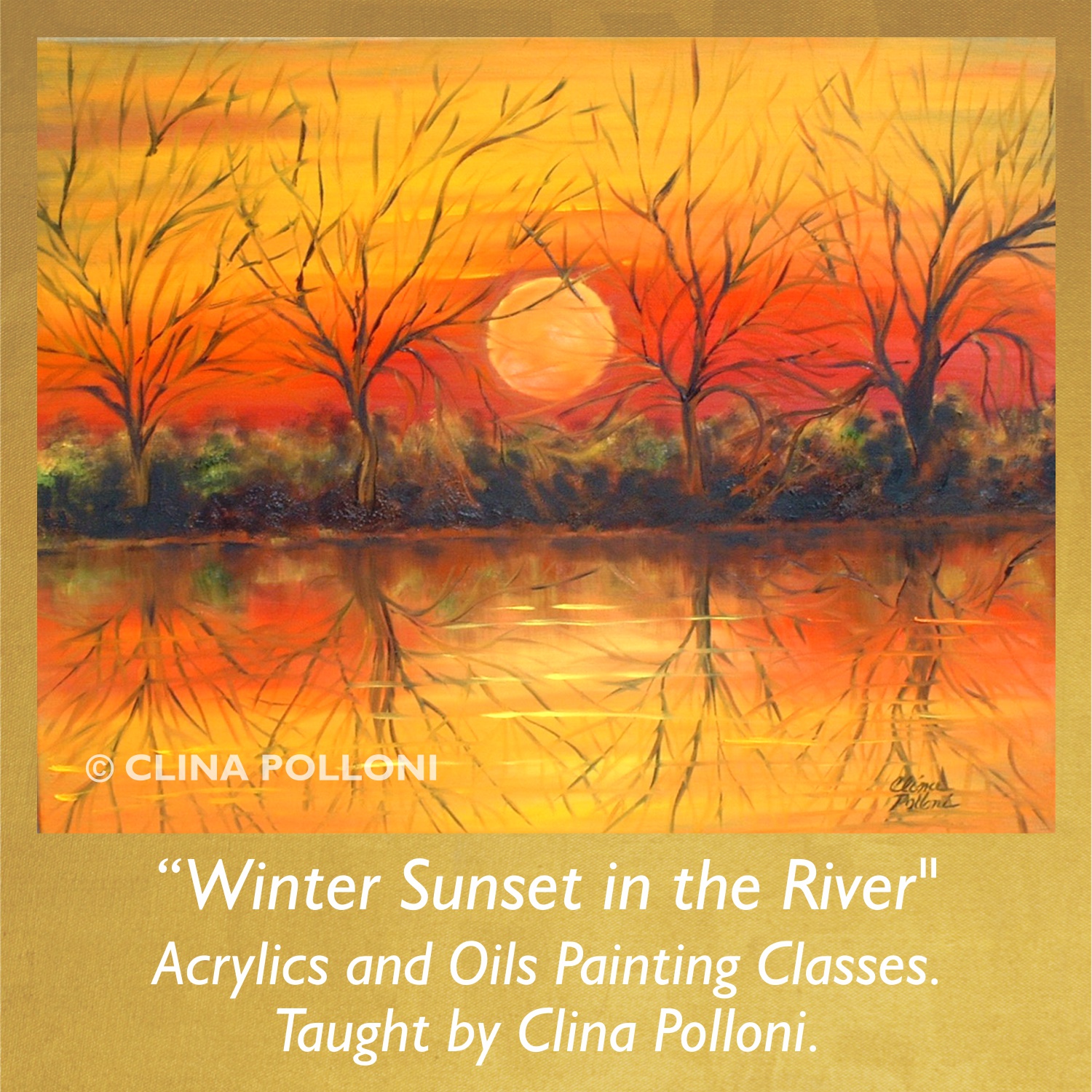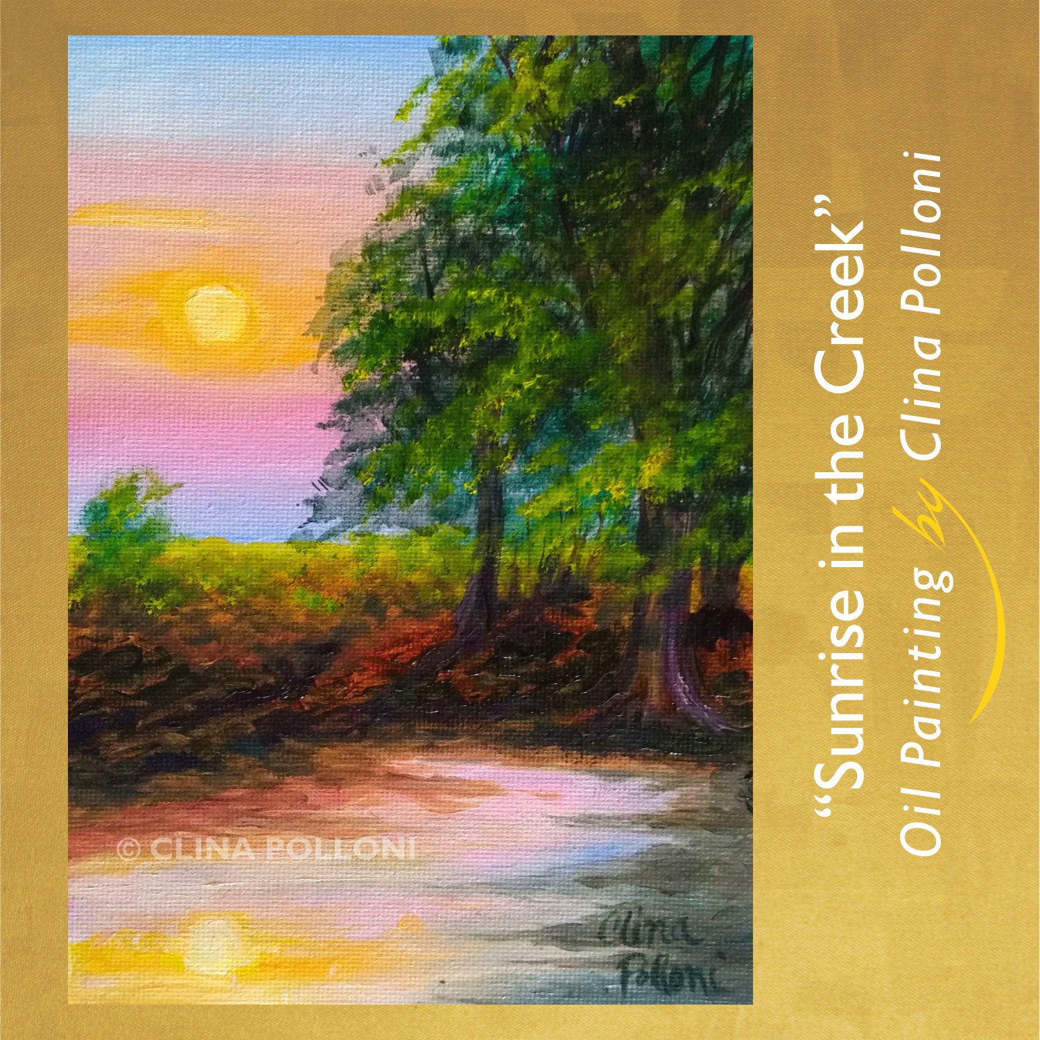 The Sunrise in a Snowy Creek painting is © of Clina Polloni.