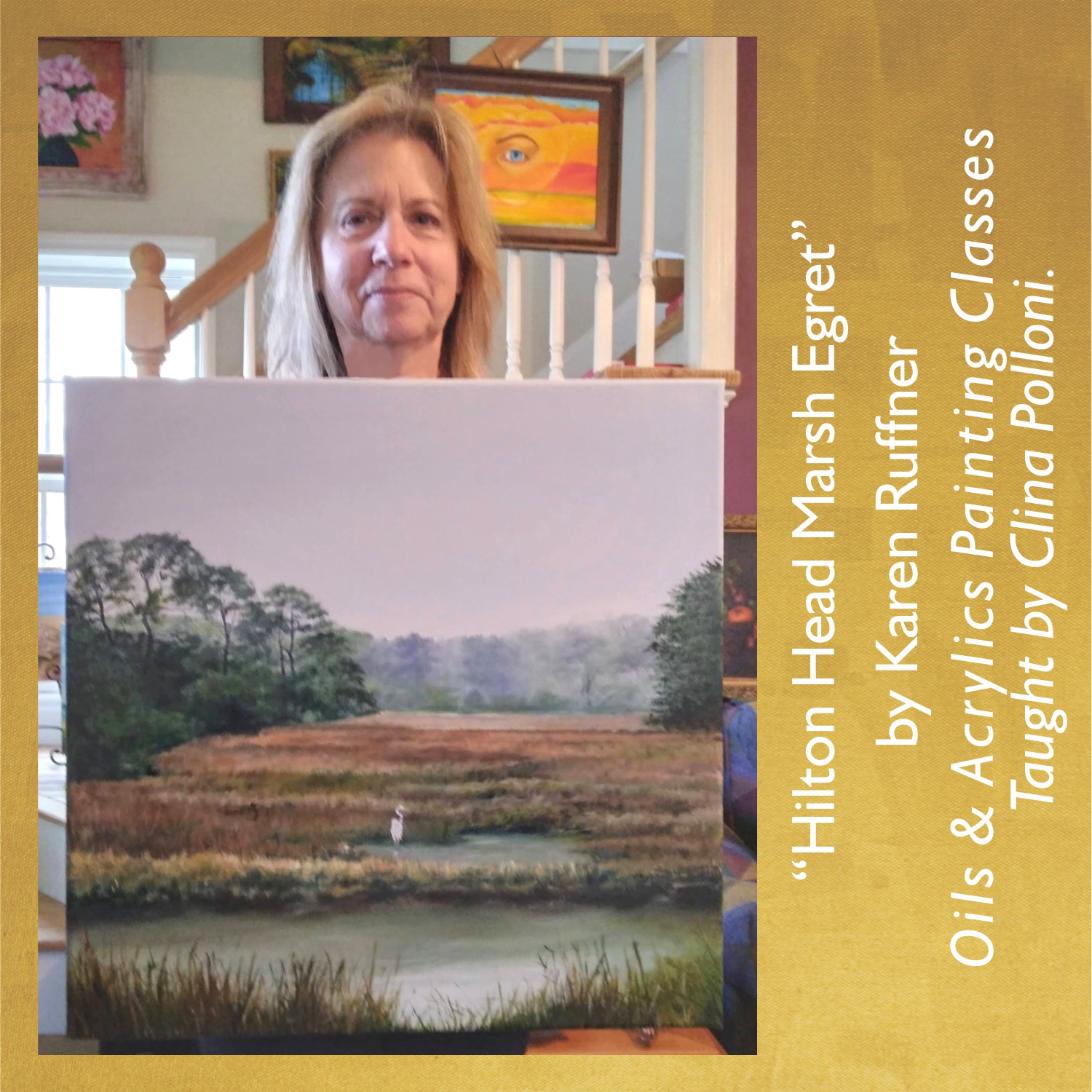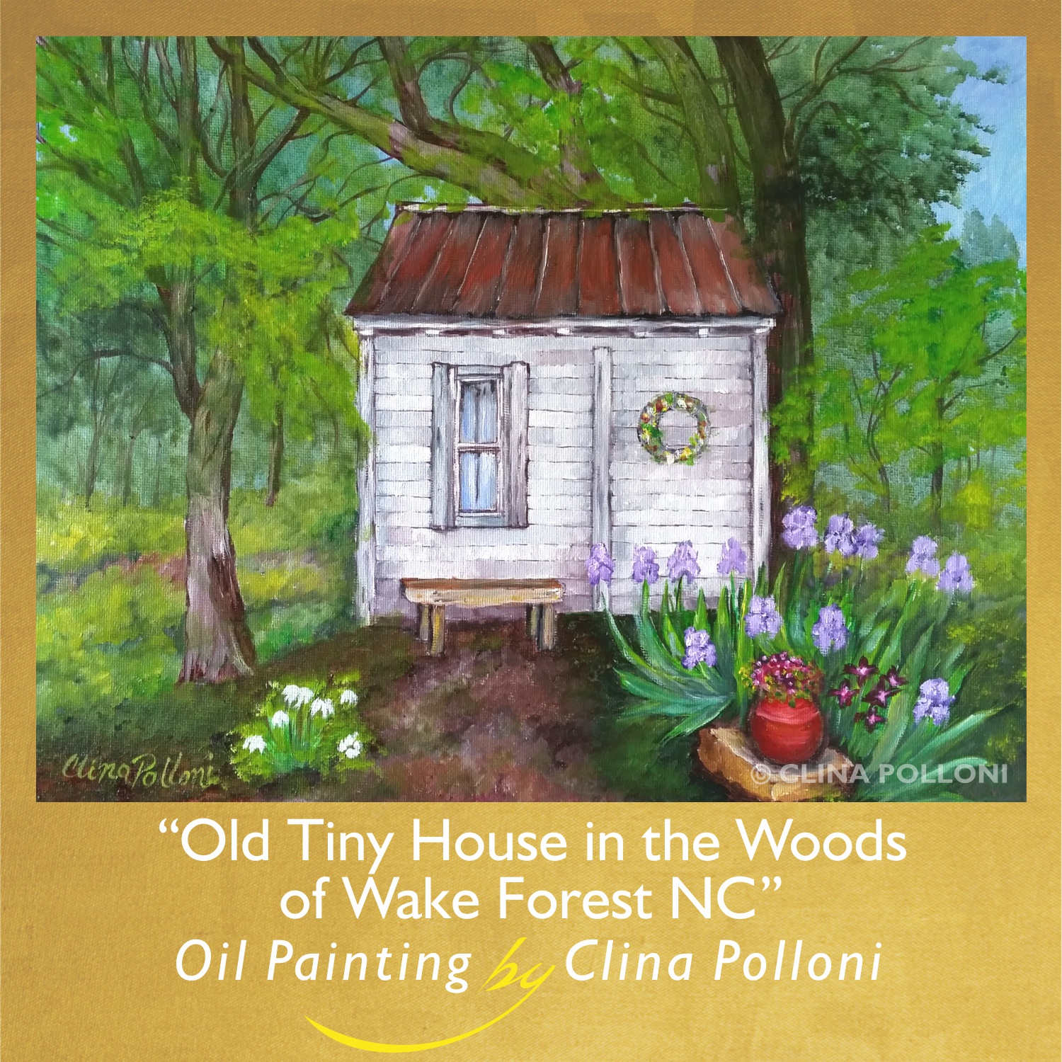 Clina Polloni is a member of The Makery and the Wake Forest Guild of Artists. Her oil paintings are at The Cotton Company and local businesses of Wake Forest NC.