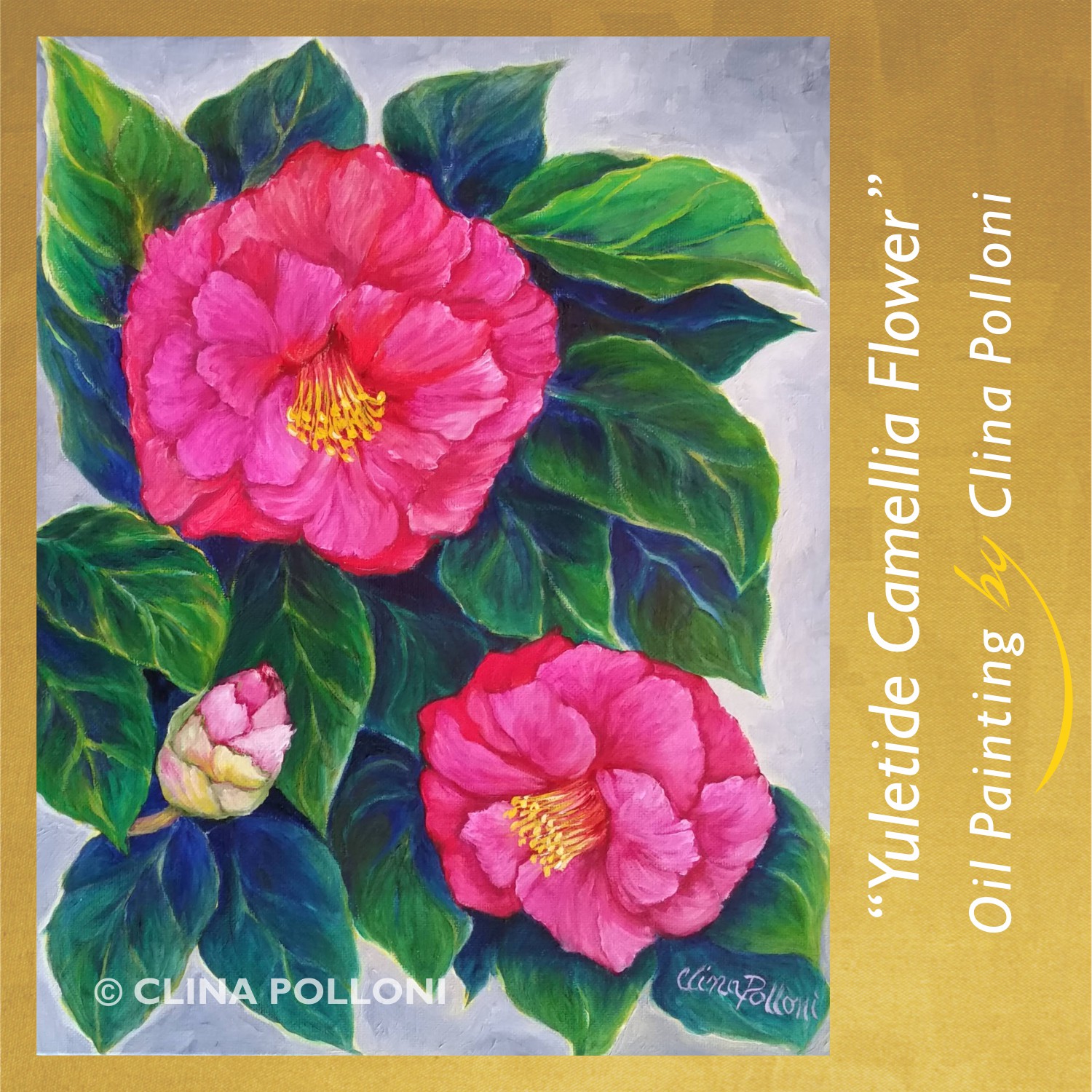 #yuletidecamellia #camelliaflower #raleighnc #floral #wakeforestnc #thecottonco #loveflowers #clinapolloniart #clinahpolloni #artistachilena #northcarolinaartist #oilpainting #paintingforsale