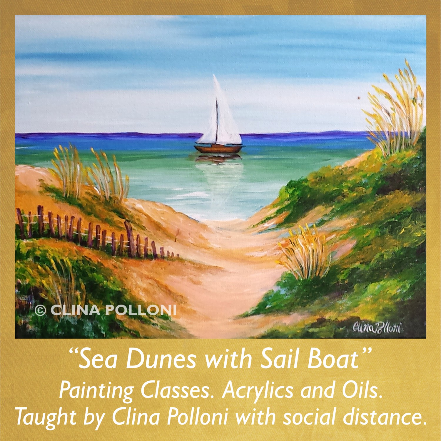 Painting Class acrylics oils-Sea Dunes with Sail Boat