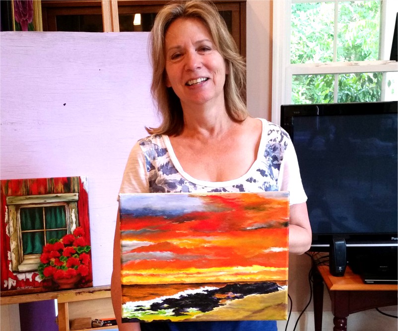 Seascape for the painting classes by Clina Polloni. Lazy summer days seating in the warm sand of Emerald Isle, looking at a sail boat going by. Emerald Isle is part of North Carolina’s Crystal Coast.